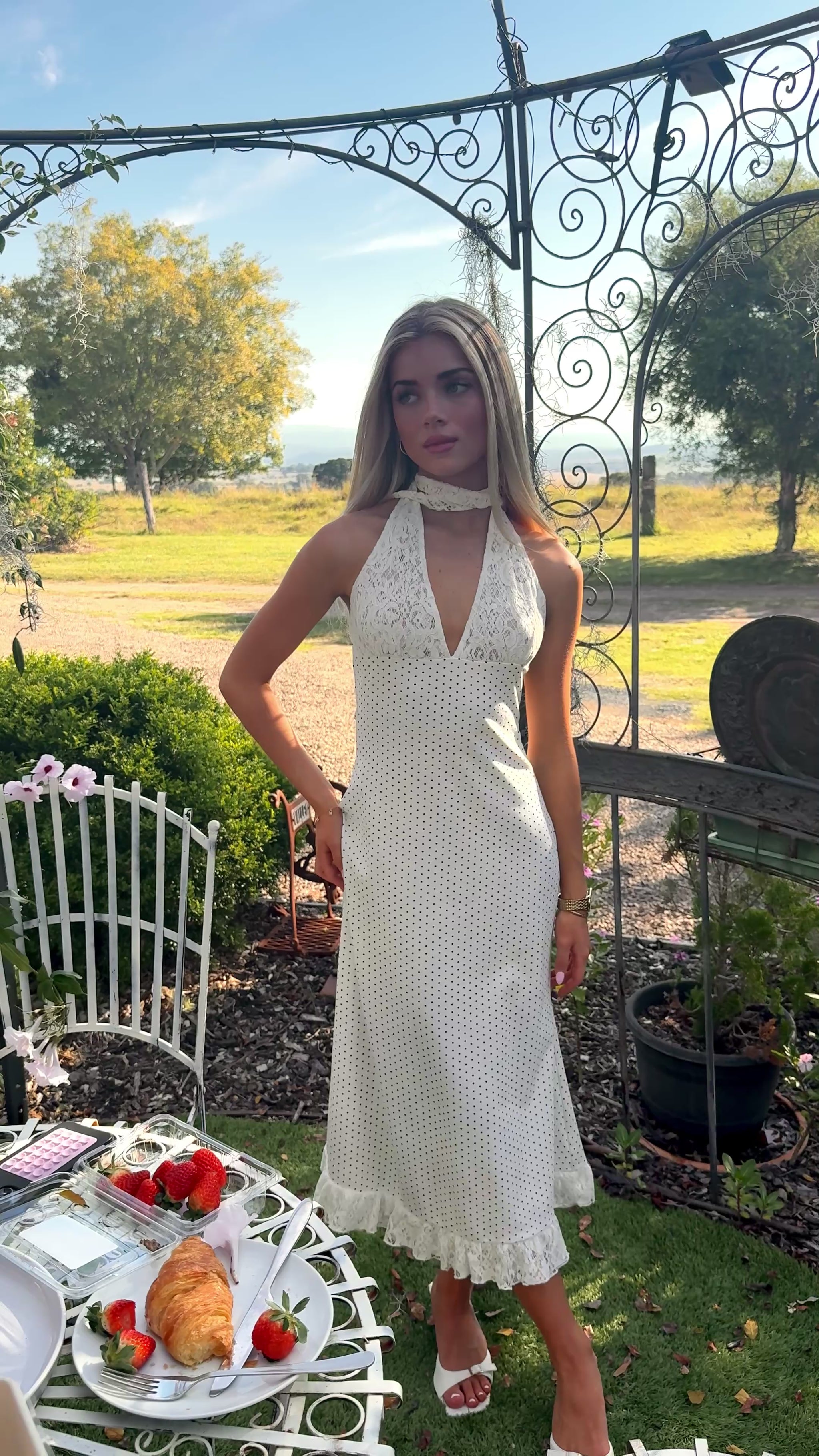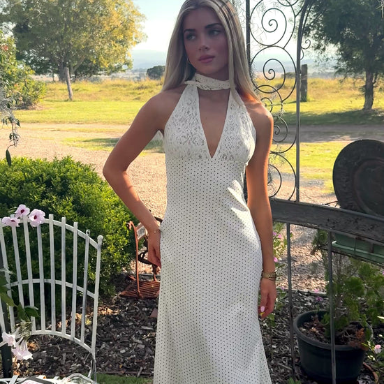 Features organic cotton spandex and floral lace halter with extended long straps details, Marrie dress is a dream in every girl’s closet.